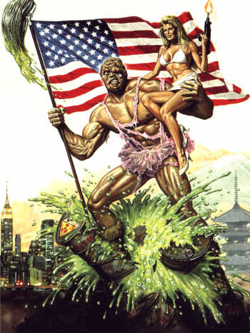 Y es que esa es otra de las características de la Troma: bajo todas esas tetas, comedia chusca, monstruos, sangre a litros, freaks, desmembramientos, potas y demás fluídos, existe, como quien no quiere la cosa, una crítica social, realizada mediante la sátira extrema.
