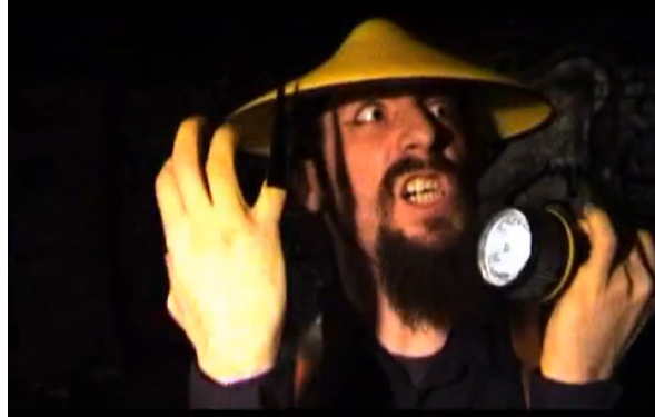 Ah, respecto al equipo técnico, no te compliques. Cuando ves una película de Hollywood, ves en los créditos pasar nombres y nombres, cientos de personas que han trabajado en la película. Si estás viendo El señor de los anillos, incluso te da tiempo a hacerte una paja. Bien. Pues en tu película casera solo necesitas 3 personas en tu equipo. Cuando hice TUMOR AMARILLO yo mismo fuí Guionista-Director-Productor-Operador de cámara-Efectos especiales-Montador (lo que se conoce como cine de autor, o un «Juan Palomo-yomeloguiso-yomelocomo»). Mi colega Dioni fue Director de fotografía (básicamente, el que sujetaba las bombillas de 30 w. y decía a los coches dónde dirigieran las largas), fue Ayudante de dirección (ayudando a organizar el cotarro y a convocar a los colegas para el rodaje, sin que ninguno se escaqueara), Maquillador (en el siguiente punto detallaré más el asunto) y también colaboró con los muchos efectos especiales gore que tiene la película. Por cierto, también interpreta el papel de Fumanchú, el villano de la película. Casi nada.