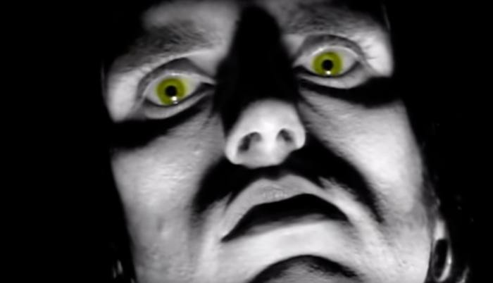Y aquí Type O Negative en concierto, donde se puede observar su molongui puesta en escena, todo de negro y verde, con el carismático cantante vestido de cura con alzacuellos verde: