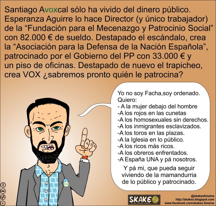 He notado mucha resignación con el ascenso de Vox (que antes eran cuatro fachas, y los medios a base de hablar de ellos les han hecho la campaña, convirtiéndolo en un partido que puede llegar incluso a sacar algunos diputados, como en Andalucía).