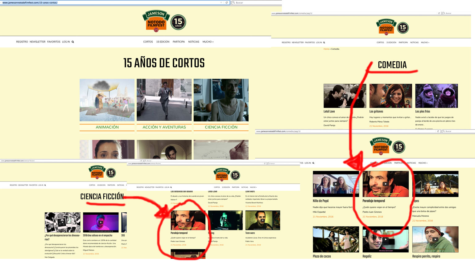 2016 Noviembre- Notodofilmfest.com: Con motivo de la celebración del aniversario 15 años del festival, Paradoja temporal ha sido seleccionado en la web del Notodo como uno de los cortometrajes más destacados del festival, en las categorías de Ciencia ficción y Comedia.